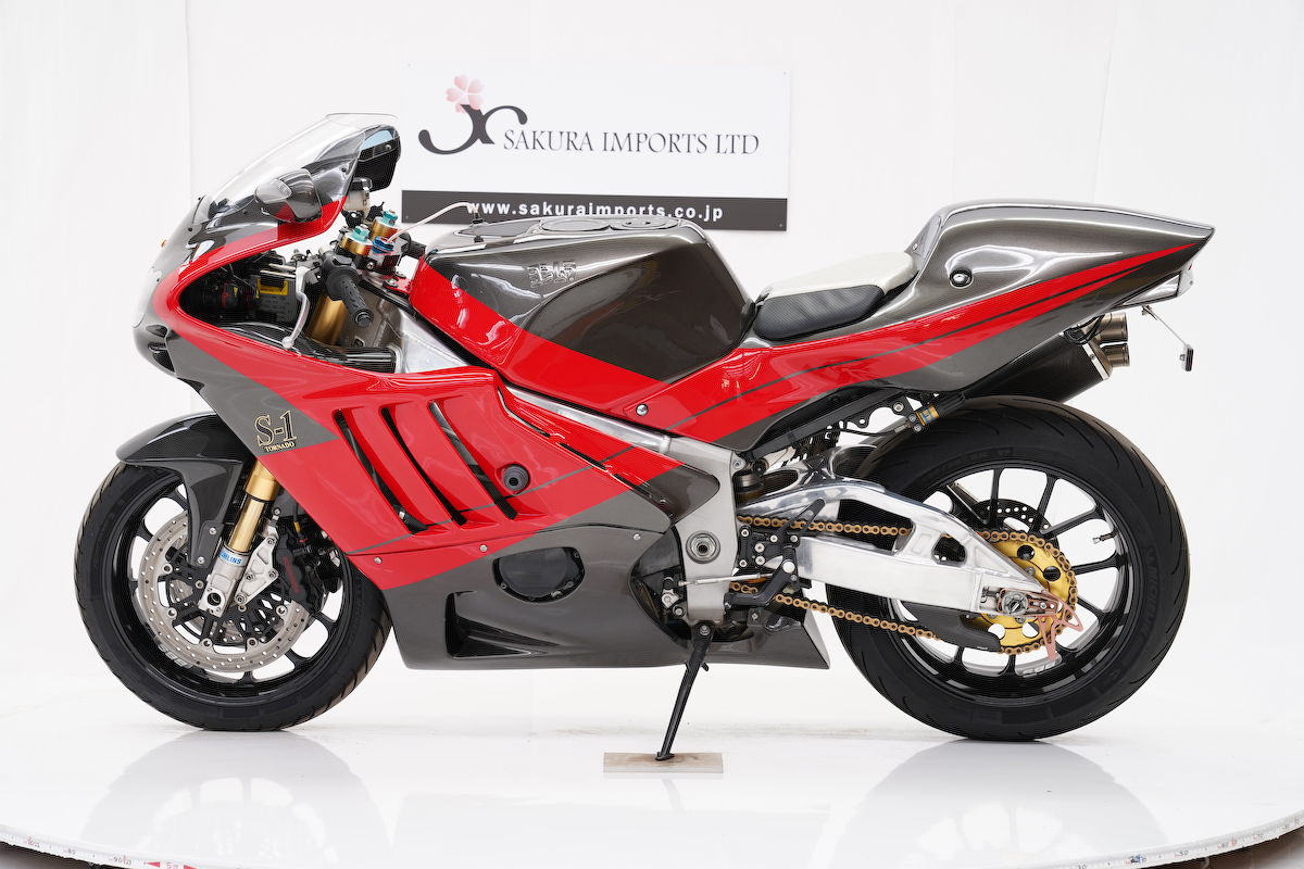 Only 50 of the Yoshimura S1 Tornado were ever built and released in 2002, Yoshimura wanted to showcase the best Suzuki had to offer in one bike. This is a super sports bike that produced 170hp at 12000rpm from a tuned engine that had been rebuilt by Yoshimura with high compression springs, high compression cylinders, ported and polished, with many more features. All carbon fibre fairings,aluminum tank, Yoshimura tuned exhaust, quick shifter strengthened swing arm and triple clamps just to name a few features. The S1 was only released in Japan. Definitely a bike for collectors. |